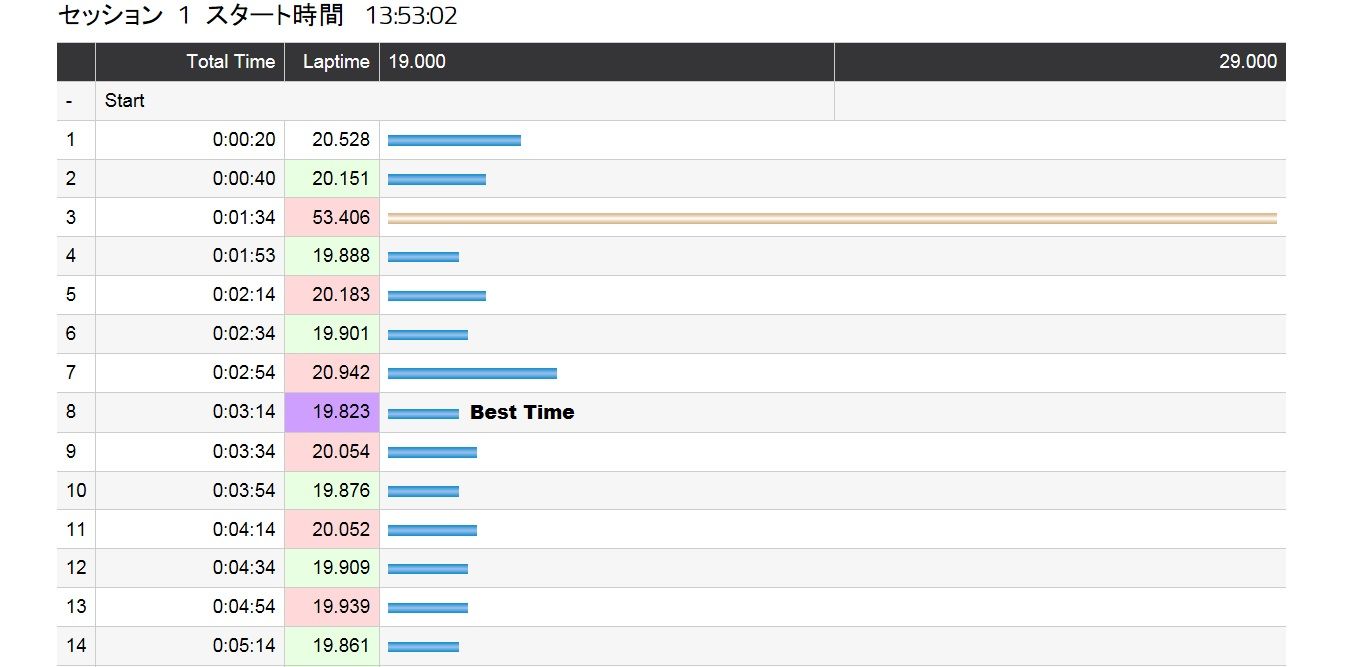 このように各ラップタイムを見る事が出来ます