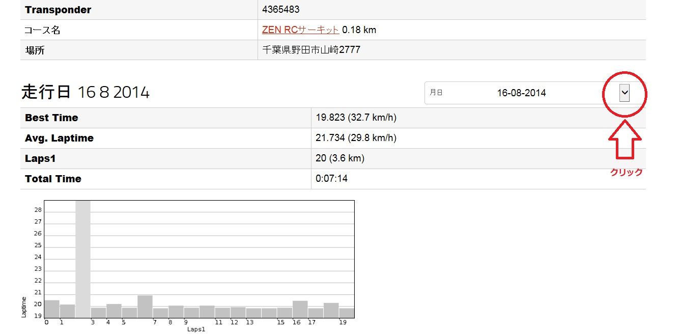見たい日付をクリックすれば過去のラップタイムを見る事が出来ます